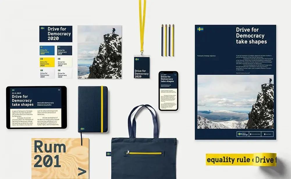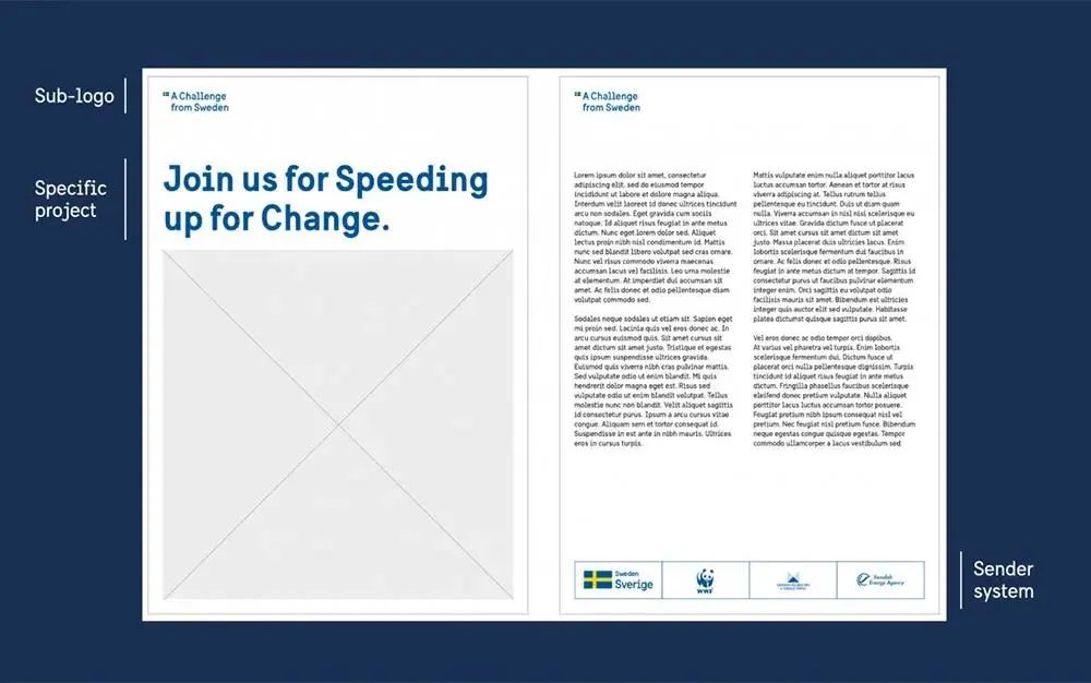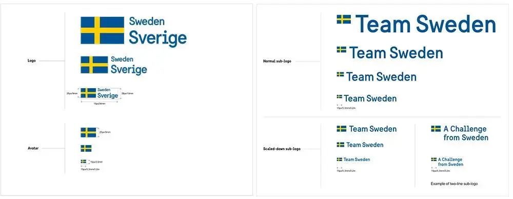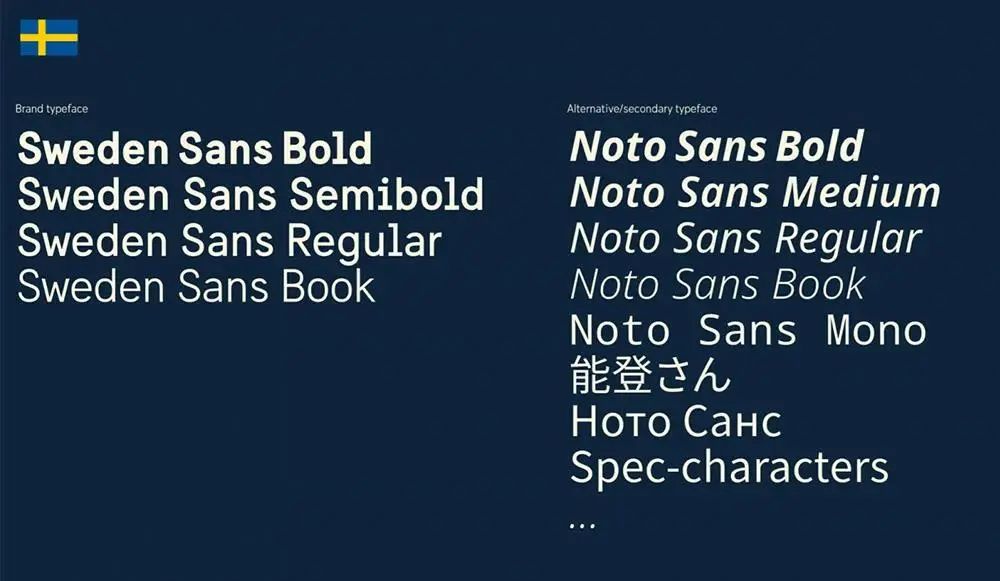 毕竟宜家的品牌色对国人来说,比其国家的国旗认知更为深刻。 瑞典本次的品牌升级并没有改动原来的LOGO,而是增加了一套更加全面和详细的品牌资产和使用规范。 正好利用瑞典这套比较完善的品牌形象,给大家看一看,一套完善的品牌形象打造的关键点。 每个行业、每个品牌的关键点都不一样,一个品牌不可能把所有的形象都展示穷极,那样会显得臃肿也没必要,所以把品牌的关键点拿出来规范和呈现就极为重要。 举个栗子。 -快递/外卖行业的关键点是服装、帽子、车体、包装; -银行行业的关键点是门头(传统)、UI界面(数字); -医院行业的关键点是环境导视。 对于一个国家而言,其关键点在于加强与外界国家的交流,传递国家文化,所以更注重在与其他国家交流时的需求,如在不同国家中不同语言版本的LOGO;如在数字时代,在对外传播时网格化的应用系统等。 瑞典这套品牌形象则涵盖:品牌标志、组合标志、辅助颜色、辅助元素、专用字体、版式规范、数字应用等等。 在呈现上,新的「瑞典品牌标识准则」主要分为品牌商标、设计原则、版式规范、品牌色、辅助元素五个方面。 不多说,上图。 品牌商标 在准则中,瑞典国旗图标将分为单图标,头像,主要标志,其他语言标志和子标志几种形式。 ▲主标志 ▲标志比例和最小尺寸 ▲社交媒体头像图标 ▲主标志和多语言标志 ▲多语言标志 ▲子标志的结构和如何设计子标志的示例 ▲子标志层次结构 ▲组合商标 ▲组合商标 ▲应用展示 设计原则 在设计的过程中,遵循一致、简单、语境的原则: 在所有交流中一致使用视觉形象可以创造可持续的品牌表达; 始终追求简单简约的视觉外观,拒绝复杂让沟通更清晰; 语境则指导品牌使用时通过不同的场景和应用需求而适当改变,例如在传达有趣的信息时,需要使用鲜艳的色彩,布局和图形。 版式规范 版式部分也是此次更新的另一个重要板块。 特别设计的字体 Sweden Sans可在所有品牌传播中提供可访问性,简单性和一致性。 Sweden Sans 有四种样式可供选择:细体,常规体,半粗体和粗体。 据介绍,Sweden Sans字体的设计灵感来自瑞典古老的路标上的文字。 ▲Sweden Sans 字体和Noto Sans 字体 ▲Sweden Sans 字体和Noto Sans 字体 另外还增加了 Noto Sans 字体作为辅助字体,可以用于Sweden Sans字体中不存在的其字母的语言。 Noto是Google所开发的开源字体家族,涵盖所有Unicode区段。 而涵盖汉字、假名、谚文的版本称为「Noto Sans CJK(思源黑体)」。 除了辅助字体,手册还指定了备用字体为Arial,一般在没有安装上述两种字体的情况下使用。 例如在Word文档中,使用Arial可能会更好。 网格是构成版式的基本框架,该手册使用了12列网格系统,具备灵活性和易用性,可以应用于印刷和数字界面。 ▲网格示例 ▲基于网格和模块化的邀请函 ▲基于网格和模块化的展览海报 品牌色 颜色充分利用了强大而又易于识别的瑞典国旗的黄色和蓝色,然后添加一组蓝黄灰辅助色,可以让形象更加灵活同时又保持了原始的DNA。 对于需要更复杂的颜色的环境,如不透明度有变化的插图和数字产品,将会用到准备特殊颜色。 ▲主要颜色 ▲辅助颜色A ▲辅助颜色B(灰度) ▲特殊颜色 辅助元素 辅助元素是对主要身份载体的补充,图形元素的视觉效果灵感来自北欧自然界发现的颜色渐变。 视觉图形分为静态和动态,可以应用于数字和打印介质。 ▲情绪板 ▲动态图形 ▲静态图形 为了解决识别问题,指导建议将图形和文本分开排列,或者在特定情况下,文本将使用明亮的白色,文本和背景之间的透明度至少应达到30%。 目前,这套完整的视觉系统已经上线使用。 Soderhavet 创意总监 Jesper Robinell 在谈到该项目时说,如今数字化比八年前要求更高,将更灵活动态的一面融入瑞典的形象非常重要。完整的视觉设计系统可以让使用者更简单,更清楚地了每个组件的功能,在需要时可以自由使用这些组件。如果没有明确的指导,很容易变得凌乱。 这也是VI视觉系统最重要的作用。